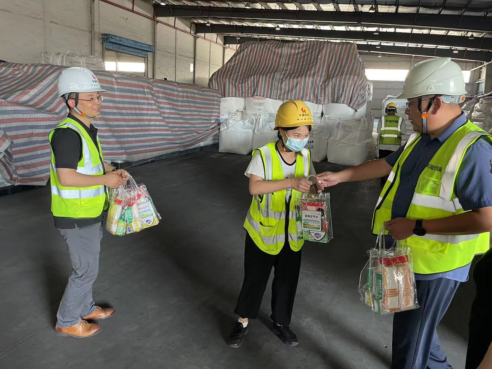 在工作现场,活动小组一一了解询问了各个仓库、岗位的防暑降温设施、设备配备情况和防暑降温措施落实情况,并发放了藿香正气水、盐汽水、花露水、西瓜、棒冰、毛巾、绿豆等防暑降温品;在这酷暑高温天为大家带来一丝丝凉爽与温馨。